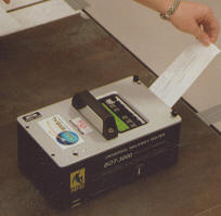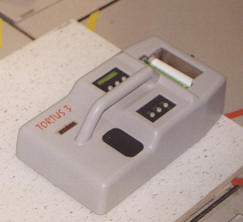The Europeans are compounding the problems of the Sigler Device by using the so-called TORTUS device. This is a self-propelled unit with a sensor foot that it pushes onto the floor at intervals. It measures the drag force by the applications of the sensor foot and automatically integrates the values to come up with what may (or may not) be a dynamic coefficient of friction (COF) value. There are many versions of this device including one exclusively used by the Italians. The TORTUS II (shown) has an integral printer that outputs the results. The FSC-2000 is a "TORTUS II" type device that is sold in Germany and has been used in schools in British Columbia.